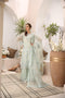 Net shirt with embroidered and embellishment details paired up with straight pants and foil printed dupatta.